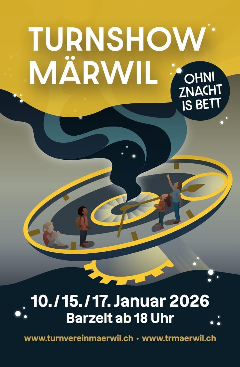 Im Januar steht die jährliche Turnshow der Turnenden Vereine Märwil an – dieses Mal unter dem Motto „Ohni Znacht is Bett“. Freut euch auf eine bunte, freche und richtig unterhaltsame Show!